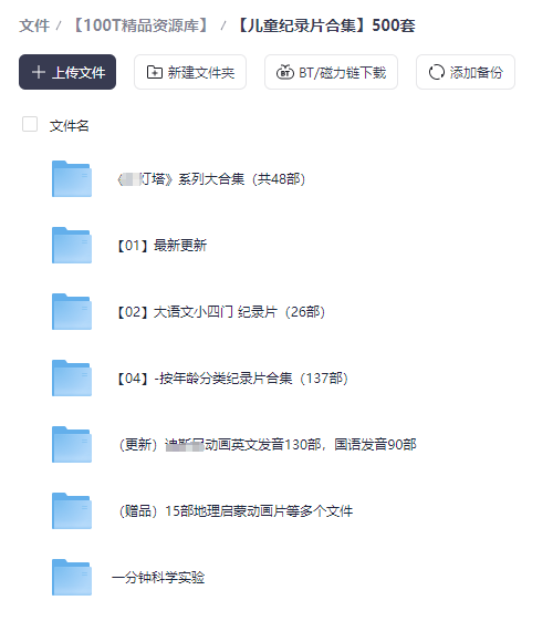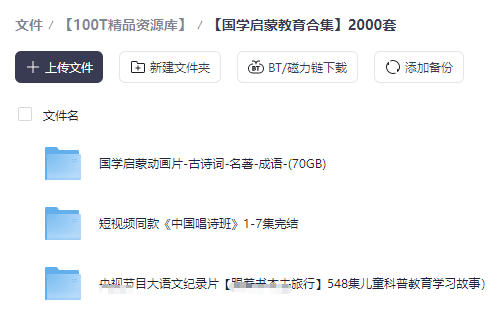 包含:2000套国学启蒙教育资源,500套儿童纪录片合集