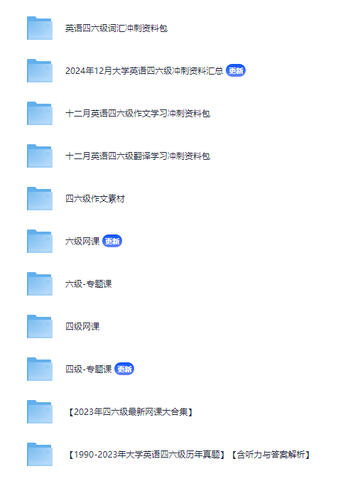 2024年12月最新的大学英语四六级课程及资料包: