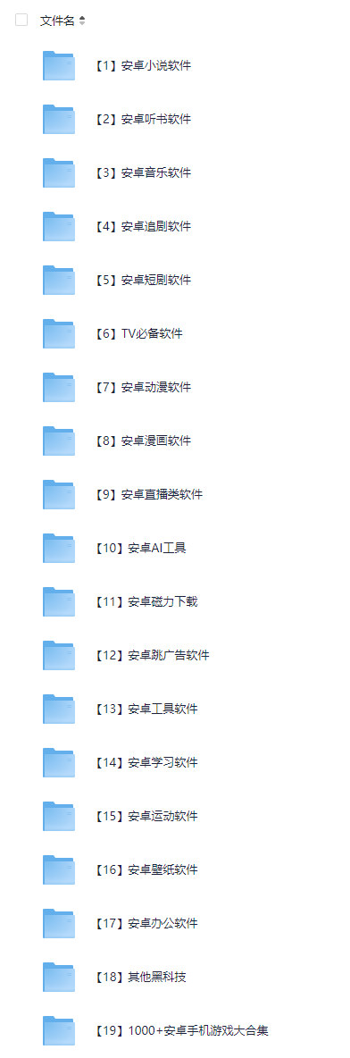 软件合集:合集内已有几百款安卓免费软件,各种免费影视、音乐、小说、动漫、漫画…你想要的都有,从此不再花钱买会员。